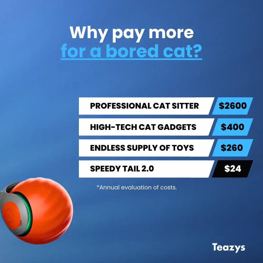 Most cat toys are either too slow, too noisy, or just plain boring. They get stuck under furniture and wear out fast. The Speedy Tail 2.0 provides endless entertainment, works smoothly on any surface, and is incredibly durable—saving you time and money.